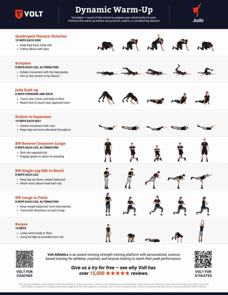 Warming up isn’t just about loosening up your body—it’s about preparing to move with control, power, and precision. This judo-specific dynamic warm-up is designed to activate key muscle groups, improve mobility through the hips and shoulders, and get you ready for fast-paced throws and steady groundwork.