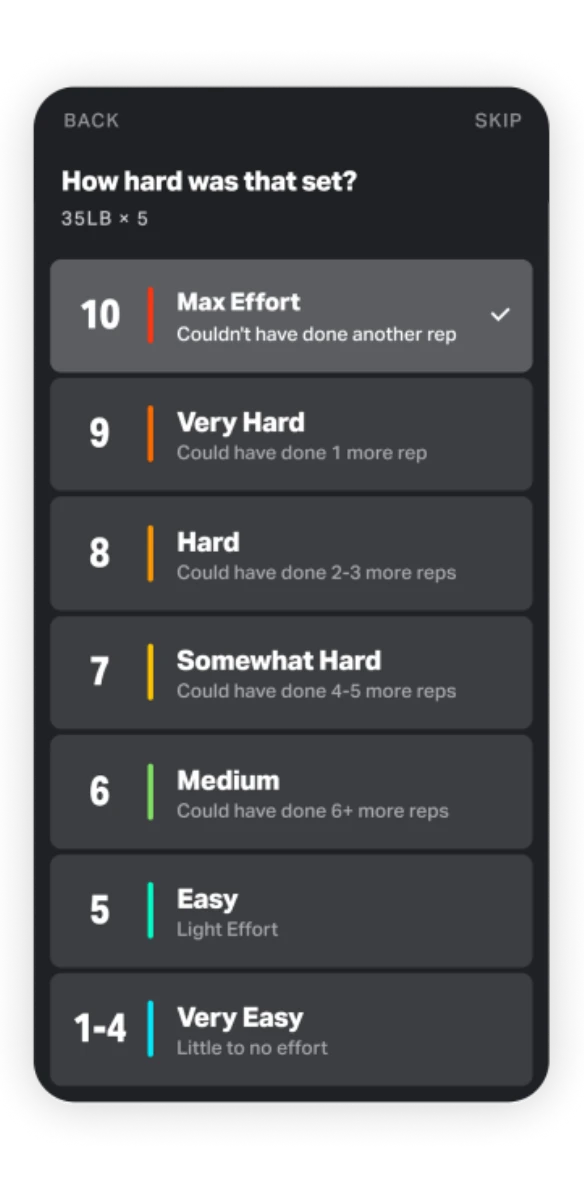 Easily monitor your rate of perceived exertion (RPE) during and after workouts with valuable individual feedback.